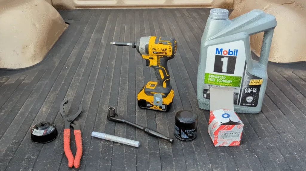 - 5 qts new oil (Mobile 1 Synthetic 0W-16)