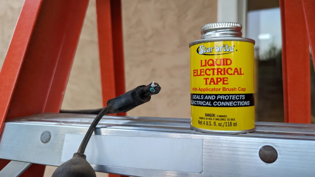 - Apply a thin coat of Star Brite Liquid Electrical Tape and let dry for 5 minutes